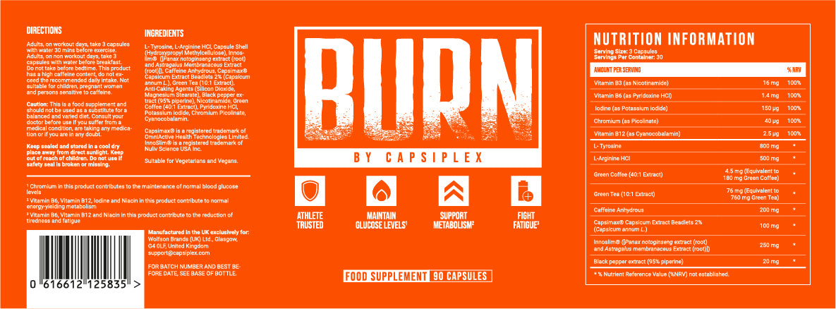 BURN è diverso da molti degli altri prodotti sul mercato perché elenca ogni singolo ingrediente e la quantità di ciascuno. Qui non ci sono ingredienti "segreti" o "miscele proprietarie".