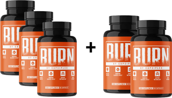 Una corretta fase di dimagrimento dovrebbe richiedere 2-4 mesi in modo da non intaccare le riserve muscolari. Ecco perché ti consigliamo di ordinare una fornitura di tre mesi di Capsiplex BURN. Con questo acquisto riceverai il tuo quarto e quinto mese GRATIS! In questo modo non solo risparmierai denaro, ma ti assicurerai di avere ancora una scorta decente di BURN per quando inizi la fase successiva di aumento della massa. L'assunzione di BURN durante la fase di aumento della massa può assicurarti di non impacchettare accidentalmente del grasso extra. Ricorda, sei sempre protetto dalla nostra garanzia di rimborso di 60 giorni, quindi perché non ottenere i maggiori risparmi e il massimo beneficio da BURN?